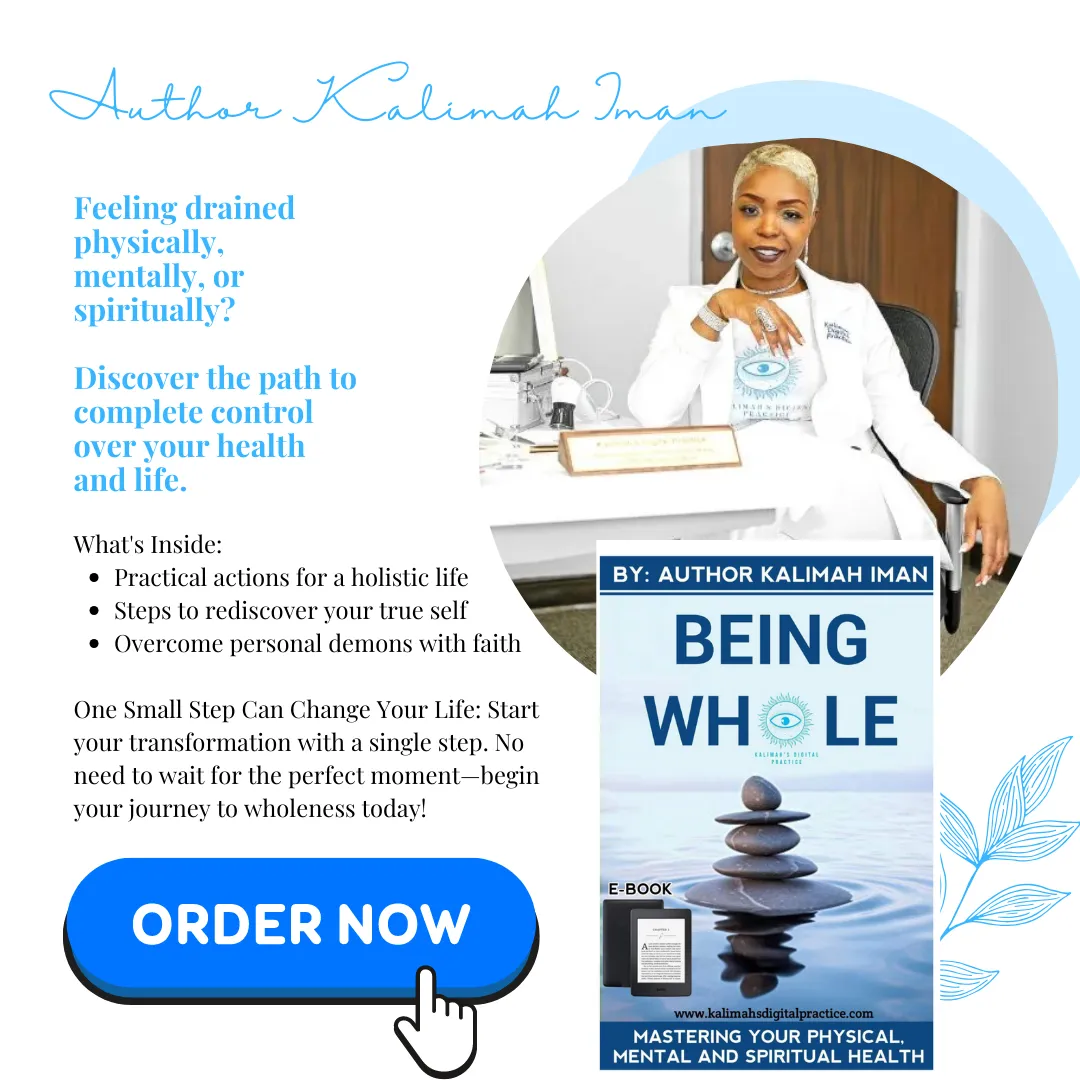 As an exclusive bonus for purchasers of the "Being Whole" ebook, you are invited to a 15-minute one-on-one Q&A session with Kalimah. This personalized session is a unique opportunity to receive expert advice and kickstart your journey towards holistic health and well-being.